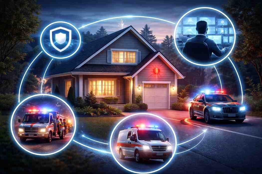 The monitoring center contacts the appropriate emergency services and provides your address and relevant details to support a faster response.